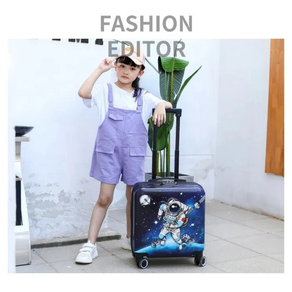 - Space Magic Design: Adorned with a captivating Space-themed design, this trolley luggage bag adds a touch of enchantment to your child's travel experience. The vibrant colors and playful illustrations make it a charming accessory for young explorers.