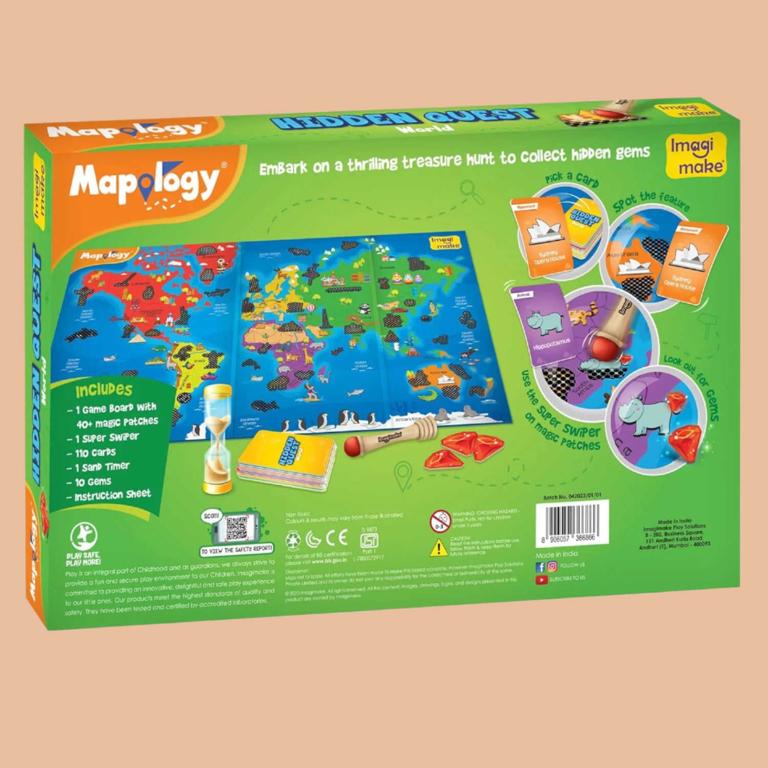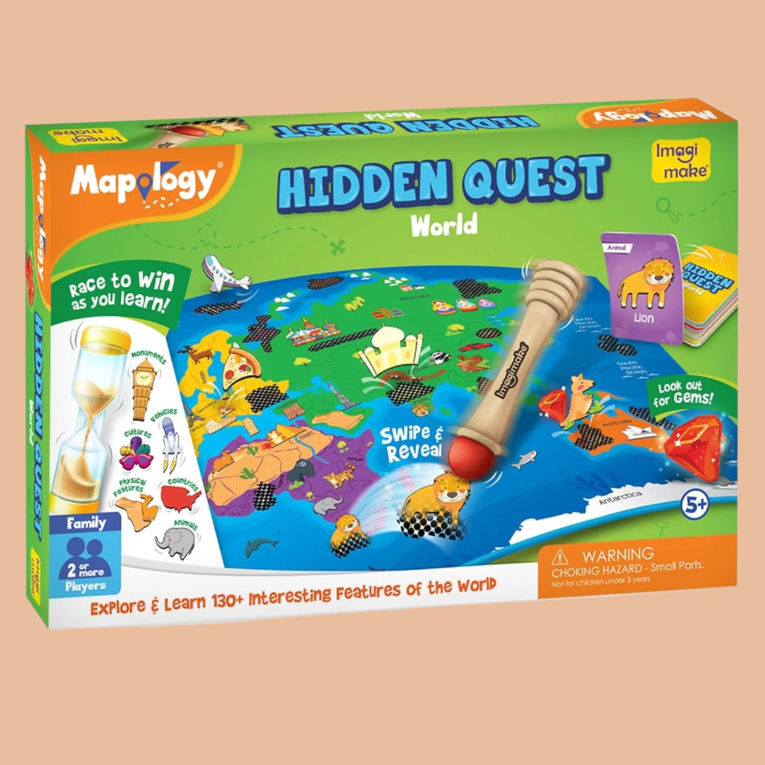 - SWIPE & REVEAL: This toys for kids has a special feature that some objects are hidden behind the magic patch on the board games for kids. The child can unleash the power of Super Swiper to reveal hidden treasures from around the world.